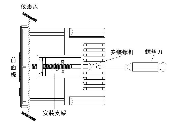 ·步骤 2:用仪表所带的安装支架如上图所示安装(仪表左右两侧各安装一个支架,仪表盘安装支架所用螺丝是 M4 标准螺丝)。